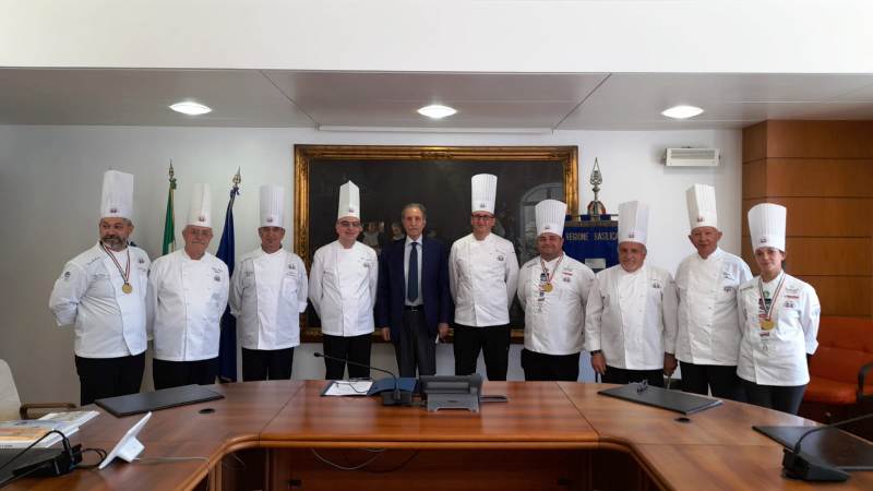 Apprezzamento per l’attenzione riservata alla categoria dalla Regione Basilicata è stato espresso dal presidente della Federazione italiana cuochi, Rocco Cristiano Pozzulo, che ha parlato della grande riconoscibilità dei prodotti lucani che si registra attualmente in Italia e ha donato al presidente Bardi un volume di cucina. A fargli eco il presidente dell’Unione regionale cuochi lucani, Rocco Giubileo, il quale ha rimarcato l’importanza dei percorsi formativi in questo campo, raccontando l’esperienza Erasmus “che sta accompagnando una settantina di giovani lucani in Germania, Spagna e nella Repubblica di Cipro per esperienze linguistiche e professionali nelle strutture alberghiere”.