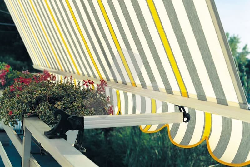In generale si tratta di una tenda che possiede braccetti mobili e un inserto colorato nel senso che risulta abbinato al colore del tessuto.
