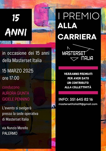 Con sfondo internazionale, per celebrare il quindicesimo anno di attività l’Associazione Culturale “Masterset Italia”, nata nel 2019 a Palermo, festeggia con il Primo Premio alla Carriera, destinato a numerosi professionisti di settore che hanno supportato attività sociali svolte sul territorio.