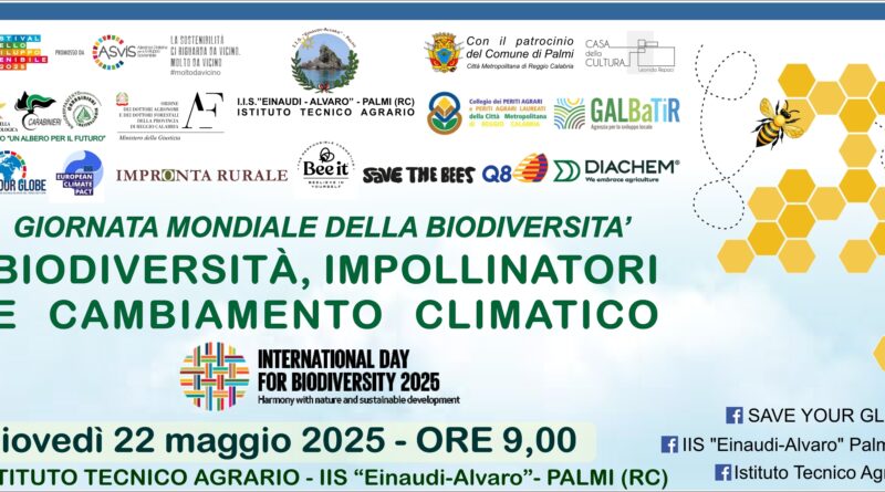 Sarà una giornata di grande valore ambientale e formativo quella in programma giovedì 22 maggio 2025 a Palmi, presso l’aula conferenze dell’Istituto Tecnico Agrario dell’IIS “Einaudi – Alvaro”, dove si terrà il convegno “Giornata Mondiale della Biodiversità – Biodiversità, impollinatori, cambiamento climatico”. L’evento si ispira al tema internazionale “Armonia con la natura e sviluppo sostenibile” e si inserisce nel calendario ufficiale del Festival dello Sviluppo Sostenibile 2025 promosso da ASviS, oltre ad essere riconosciuto tra le celebrazioni ONU del “International Day for Biological Diversity”.