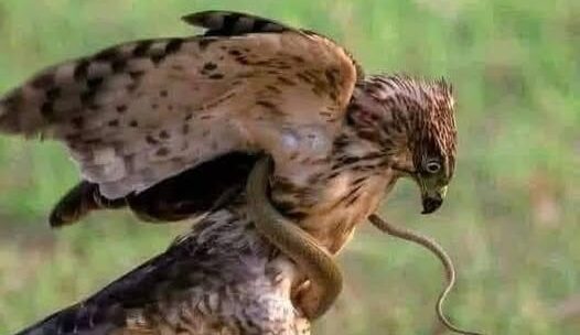 Cambia il luogo della battaglia, lo solleva in cielo e poi libera il serpente dall’aria. Il serpente non ha potere o equilibrio nell’aria.