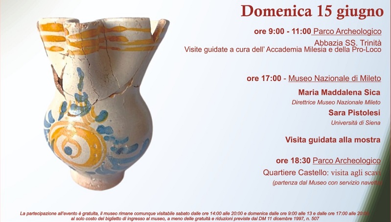Domenica 15 giugno, l’iniziativa proseguirà con due turni di visita guidata – alle ore 9 e alle 11 – tra i ruderi dell’abbazia normanna, a cura delle associazioni Pro Loco e Accademia Milesia. Il Museo nazionale aprirà straordinariamente dalle 17 alle 20, con una nuova introduzione a cura della direttrice Sica e della studiosa Sara Pistolesi (Università di Siena), seguita dalla visita alla mostra e al sito degli scavi.