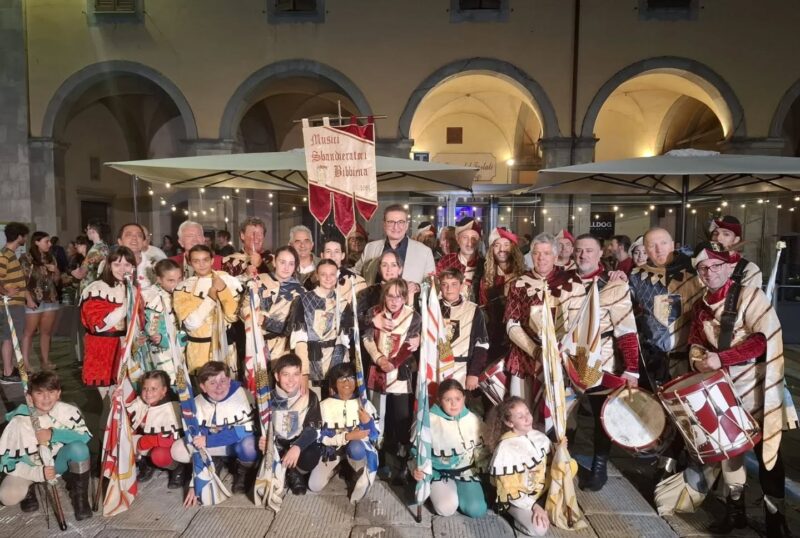 Grande partecipazione di pubblico e un’atmosfera vibrante hanno accompagnato la serata principale, condotta con passione e competenza da Roberto Giacobbo, volto noto della divulgazione culturale, affiancato da Gian Piero Polverini, storico animatore dell’evento. La piazza di Bibbiena, cuore pulsante del Casentino, si è trasformata in un palcoscenico spettacolare, incorniciata dai colori delle bandiere e dall’energia dei gruppi ospiti.