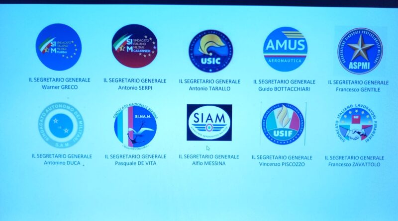 Warner GRECO “SIM” Sindacato Italiano Militari Marina – Antonio SERPI “SIM” Sindacato Italiano Militari Carabinieri – Antonio TARALLO “USIC” Unione Sindacale Italiana Carabinieri – Guido BOTTACCHIARI “AMUS” Aeronautica – Francesco GENTILE “ASPMI” Associazione Sindacale Professionisti Militari – Antonino DUCA “SAM” Sindacato Autonomo dei Militari -Pasquale DE VITA “SI.NA.M” Sindacato Nazionale Marina – Alfio MESSINA “SIAM” Sindacato Aeronautica Militare – Vincenzo PISCOZZO “USIF” Unione Sindacale Italiana Finanzieri – Francesco ZAVATTOLO “SILF” Sindacato Italiano Lavoratori Finanzieri .