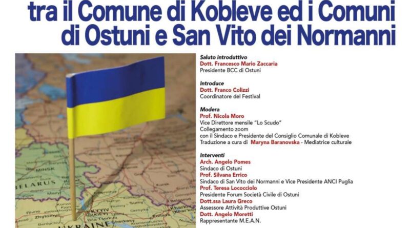 Nell’ambito della nona edizione del Festival della Cooperazione Internazionale, la Banca di Credito Cooperativo di Ostuni ospiterà un importante incontro dedicato alla firma e presentazione del Patto di Collaborazione tra il Comune di Kobleve (Ucraina) e i Comuni di Ostuni e San Vito dei Normanni.