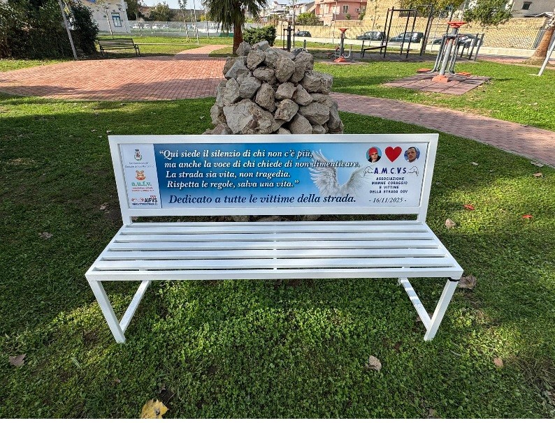 Subito dopo, alle 11:45, si è svolta l’inaugurazione della Panchina Bianca, simbolo nazionale di memoria e sensibilizzazione. La panchina, collocata nella Villa Comunale, è destinata a diventare un luogo di raccoglimento permanente, un segno tangibile che invita a non dimenticare e a promuovere la cultura della sicurezza stradale.