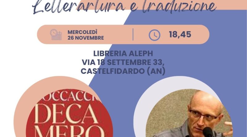 Continuano gli incontri a Castelfidardo, per salvare la libreria Aleph dalla fine di un percorso. Questa settimana ben due appuntamenti. Il primo sarà Mercoledì 26 novembre, alle 18,45. Lo scrittore e traduttore di primissimo piano Alberto Cristofori presenta il suo nuovo lavoro sul Decamerone di Boccaccio. Dall’italiano antico a quello contemporaneo, per rendere fruibile la serie di racconti del famoso scrittore rinascimentale. La Nave di Teseo di Elisabetta Sgarbi ha creduto in questo progetto e a noi piace proporlo, sia in presenza che online. L’incontro è organizzato con l’ADI e Cepell ed è valido come aggiornamento docenti. Sabato 25 invece sarà la volta di Marco De Biagi col suo Universo 25 – sotto la montagna. Un urban fantasy, thriller distopico e mozzafiato ambientato sull’appennino marchigiano. Quando ribellarsi significa andare incontro al proprio destino. L’ingresso è libero e gradito, così come lo sarà quello di domenica mattina alla chiesetta di S.Maria di Portonovo (AN), a due metri dal mare, domenica 30. Ogni incontro è organizzato per intensificare la frequenza di eventi culturali, nell’ottica di salvezza della libreria Aleph, per scongiurarne la chiusura a fine anno e per rilanciare cultura, collaborazione e territorio a partire dal prossimo gennaio. Si annunciano novità entusiasmanti, grazie a chi continua a far avvicinare all’obiettivo di raccolta fondi, attraverso il crowdfunding: sostieni.link/39124