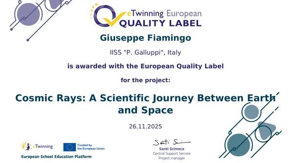 Il progetto “Cosmic Ray” ottiene l’European Quality Label 2025: prestigioso riconoscimento per l’iniziativa del professore Giuseppe Fiamingo