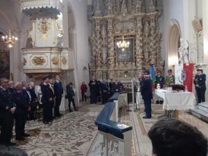 La cerimonia a Corigliano d’Otranto è iniziata con l’accoglienza dei partecipanti nell’atrio del Castello de’ Monti alle ore 08.30. Alle ore 09,30 trasferimento in corteo alla Chiesa Madre dove è stata celebrata la Santa Messa in suffragio dei Caduti di Nassiriya e dei Soci ANSI di Corigliano d’Otranto deceduti di cui il Presidente ANSI Nicola Mangia ne ha ricordato i nomi, ricordando inoltre i tre Carabinieri deceduti a Castel D’Azzano. Hanno partecipato Autorità Civili tra cui il Commissario di Governo, Autorità Militari: il rappresentante del 10° Reparto R.M.V. di Galatina Tenente Colonnello Carlo Lolli, del Comando Scuola di Cavalleria di Lecce, il Comandante della locale Stazione CC. e il Comandante della Polizia Locale ed Autorità Religiose con numerose Associazioni d’Arma: dei Reduci, dell’Arma Aeronautica, dell’ANCI, dell’Ist. Nazionale delle Guardie d’Onore al Pantheon Delegazione di Lecce, dell’ANMI, dell’ANFI e dell’ANSI tra cui i Soci di ANSI Corigliano d’Otranto, ANSI Nociglia con il M.llo Cav. Fernando Antonio Toma Cerimoniere, ANSI Lecce con il Vice Presidente Nazionale Area Sud Aiut. Giuseppe Scardia, ANSI Miggiano, ANSI Trepuzzi e ANSI Galatone . La partecipazione della Medaglia d’Argento al Valor Militare Brigadiere Capo dell’Arma dei Carabinieri in congedo Luigi Toma che ha dato un forte significato per la ricorrenza e l’attentato del 12 novembre 2003 a Nassiriya, che costò la vita a 28 persone di cui 12 italiani e 9 iracheni, durante l’operazione “Antica Babilonia”. Al termine della Santa Messa causa pioggia, la cerimonia e proseguita in Chiesa dove, lo speaker Francesco Palmulli, ha dato lettura della motivazione della M.A.V.M. cui e seguita l’allocuzione e i saluti del Commissario di Governo. Al termine approfittando di un momento di pausa della pioggia la deposizione di una corona di alloro al Monumento Ai Caduti dove, sono stati resi gli onori Ai Caduti e il Silenzio. Trasferimento per il pranzo presso l’Aeroporto Militare di Galatina con il taglio della torta.