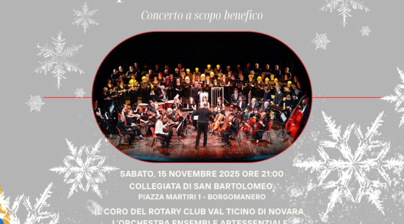 Accanto all’Ensemble Artessenziale si esibiranno il Coro Rotary Club Val Ticino di Novara e il Coro Omnia Vox, che proporranno brani natalizi e classici corali. Un repertorio pensato per accompagnare il pubblico verso l’atmosfera delle festività, con un messaggio di pace e condivisione.