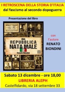 Il secondo incontro, sempre alle 18, vuole mettere in luce gli elementi che hanno condizionato negativamente non solo la nascita della nostra Repubblica, ma anche i suoi successivi sviluppi. Per fare i conti con il nostro passato pieno di falsi miti e segreti che continuano a condizionare il presente. Ci interrogheremo insieme sui segreti, a partire dall’entrata in guerra dell’Italia nella Seconda guerra mondiale, per passare alla morte di Mussolini e della sua amante Petacci, al cosiddetto “oro di Dongo”, al fantomatico carteggio segreto Churchill-Mussolini, ai poteri occulti che hanno condizionato la prima repubblica con i vari omicidi eccellenti e le varie stragi di innocenti, rimaste ancora senza verità e giustizia, fino ad arrivare a quelle mafiose del 1992/1993, per terminare con la nascita della seconda repubblica.