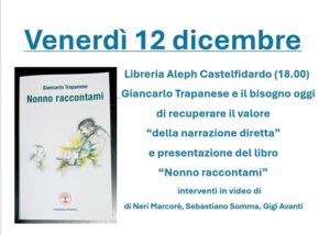 Doppio evento il prossimo fine settimana. Si comincia il 12 con Giancarlo Trapanese e le sue storie in “Nonno raccontami”, per proseguire il 13 con Renato Biondini e i segreti della nascita della nostra Repubblica. Nel primo evento, alle 18, ci interrogheremo sulla possibilità che anche oggi un nonno o una nonna possano trovare 10 minuti al giorno per affascinare i nipoti non con immagini caleidoscopiche, computer, tablet, cellulari e TV, ma solo con la voce. Servirà anche per vivere un momento (fugace ma unico) di profonda intimità cullando la meravigliosa ingenuità e fantasia dei bambini solo con la forza evocativa delle parole. Magari approfittando, con questo libro, di favole calate nella realtà odierna. Con Interventi in video di Meri Marcorè, Sebastiano Somma e Gigi Avanti.