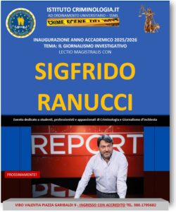 Sigfrido Ranucci inaugura l’anno accademico dell’Istituto di Criminologia di Vibo Valentia: Lectio Magistralis e Premio Criminologia.it 2026