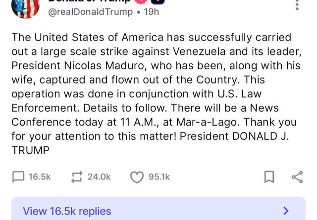 Mentre in tutto il mondo si continua a dibattere all’infinito sul diritto internazionale, Donald Trump ha scelto di parlare l’unico linguaggio che certi regimi capiscono davvero: quello della decisione. Fermare una minaccia che destabilizzava l’intero emisfero, tra narco-traffico e alleanze con Iran, Russia e Cina, non lo vedo come “imperialismo”, ma come una scelta di sicurezza globale.