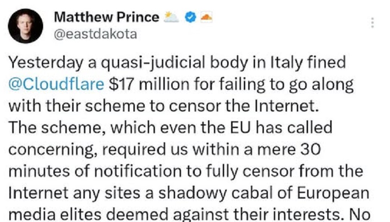 Quella sollevata dal CEO di Cloudflare, Matthew Prince, non è una semplice disputa tra un’azienda privata e un’autorità di regolazione. È qualcosa di molto più serio: un nodo che riguarda la libertà della rete, lo stato di diritto e il buon senso democratico.