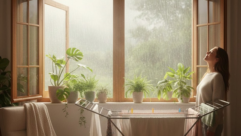 Otwieranie okien podczas deszczu może wydawać się dziwne dla wielu osób. Strach, że wilgoć wpadnie do mieszkania, powietrze „się zepsuje” albo pranie nie wyschnie, wciąż jest powszechny. Tymczasem nauka i codzienne doświadczenie pokazują coś innego: wietrzenie mieszkania, nawet – a może zwłaszcza – podczas deszczu, przynosi realne korzyści dla zdrowia, poprawia jakość powietrza w domu i pomaga w suszeniu prania.