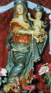 Antico pulpito con parti intarsiati, posto all’interno della stessa chiesa del Rosario, con mano lignea reggente un crocifisso. (distrutto).