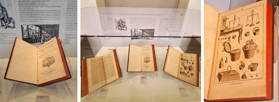 L’Encyclopédie ou Dictionnaire raisonné des sciences, des arts et des métiers è un dizionario ragionato dello scibile universale, un manifesto dell’Illuminismo frutto di una stesura collettiva condotta da Denis Diderot, Jean-Baptiste Le Rond d’Alembert e altri intellettuali, tra cui Voltaire e Rousseau. Pubblicata tra il 1751 e il 1772, si compone di 17 volumi di testo e 11 di tavole illustrate (planches) e raccoglie il sapere tecnico, scientifico, artistico e filosofico del XVIII secolo, tra cui figura anche la metrologia. L’opera integrale fa parte del patrimonio della Camera di commercio.