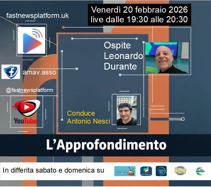 Vendredi 20 février, de 19h30 à 20h30, Leonardo Durante sera l’invité principal d’une interview en direct sur Fast News Platform, dans le cadre du format « L’Approfondimento », animé par le directeur Antonio Nesci.