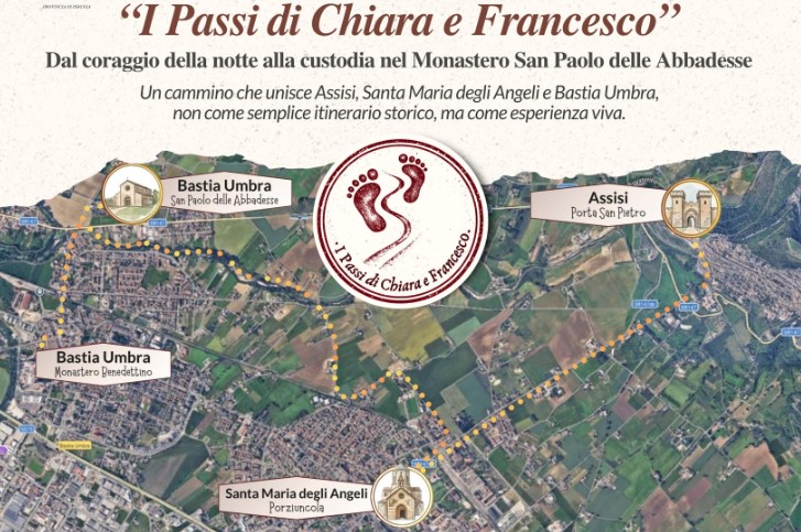 Bastia Umbra si prepara ad ospitare un grande progetto culturale e spirituale: “I Passi di Chiara e Francesco” sarà presentato domenica 12 aprile 2026 alle ore 17 presso la Chiesa dell’ex Monastero di San Paolo delle Abbadesse, all’interno del Cimitero Monumentale.